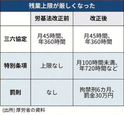 それまで大規模なクレームや製品トラブルへの対応などは「特別条項」を結べば上限なしで働けましたが、特別条項があっても月100時間未満、年720時間までとしました。